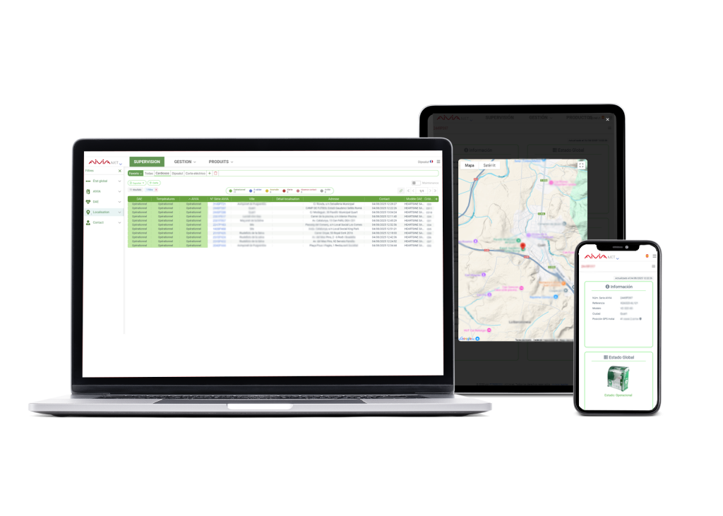 Tècnics i empreses responsables del manteniment de múltiples desfibril·ladors, AIVIA GO i AIVIAnet simplifiquen la supervisió diària, ajuden a prioritzar les actuacions i documenten automàticament les intervencions realitzades.